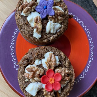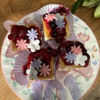 Zomerse zoete aardappel brownie met zomerfestival en pistachenoten