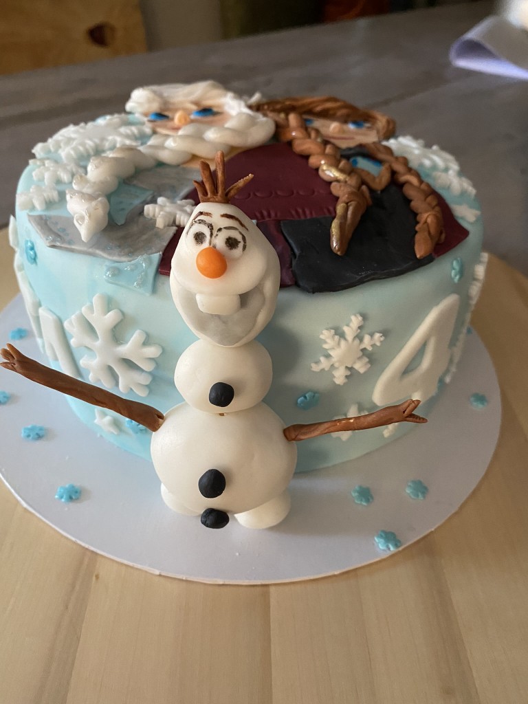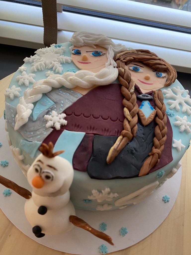 Bij deze taart mocht ik een Frozen schaaltje maken!