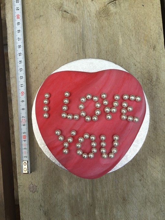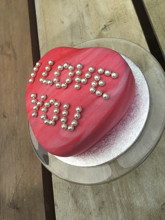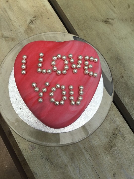 Dit kleine last minute taartje werd besteld door iemand die vanwege de verhuizing bijna de verjaardag van haar grote liefde was vergeten.... Of ik nog tijd had om een piepklein taartje te maken met i love you erop....natuurlijk heb ik dat gedaan!