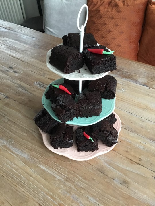Deze heerlijke spicy brownies heb ik speciaal voor mijn jarige zoon gebakken. Brownies met chilipeper erin. En lekker dat ze zijn!